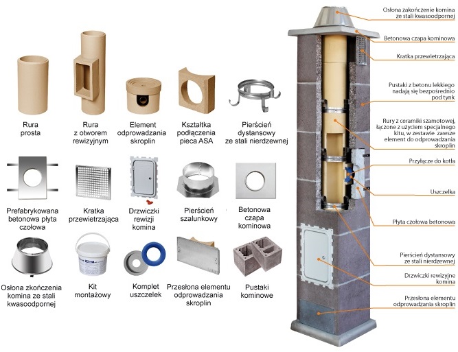 - Pierścień szalunkowy lub betonowa czapa kominowa