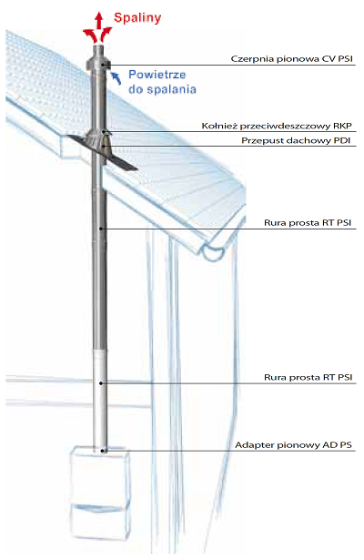 Zestaw przeznaczony jest do odprowadzania spalin z kotłów kondensacyjnych i turbo pinowo przez dach budynku.