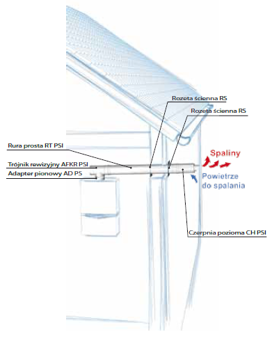Zestaw przeznaczony jest do odprowadzania spalin z kotłów kondensacyjnych i turbo, poziomo przez ścianę budynku.